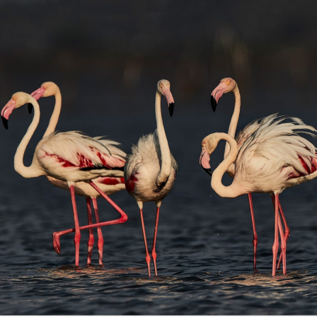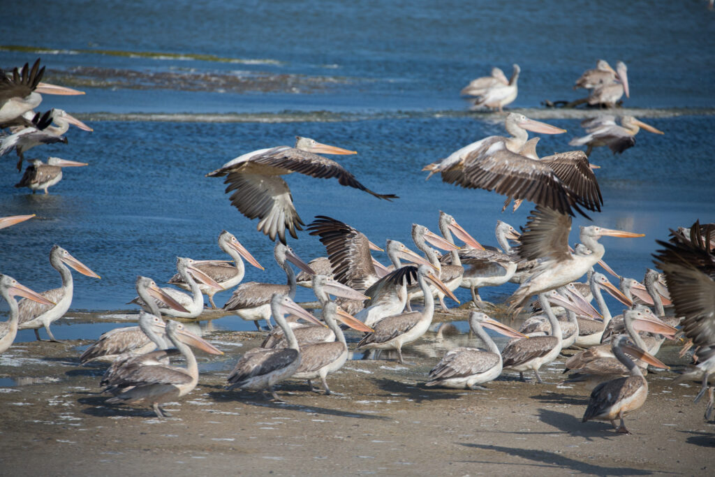 • Spot migratory flamingos and pelicans